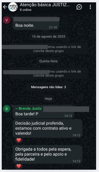 Em mensagens de WhatsApp obtidas pela reportagem, a sócia da empresa, Brenda Justiz, comemora a suposta liberação de seus contratos com a Prefeitura — apesar de uma decisão judicial clara que determinou a imediata suspensão desses vínculos, sob pena de multa de R$ 100 mil por dia. “Estamos com contrato ativo e valendo!”, escreveu ela em um grupo de profissionais da área, desinformando os participantes.