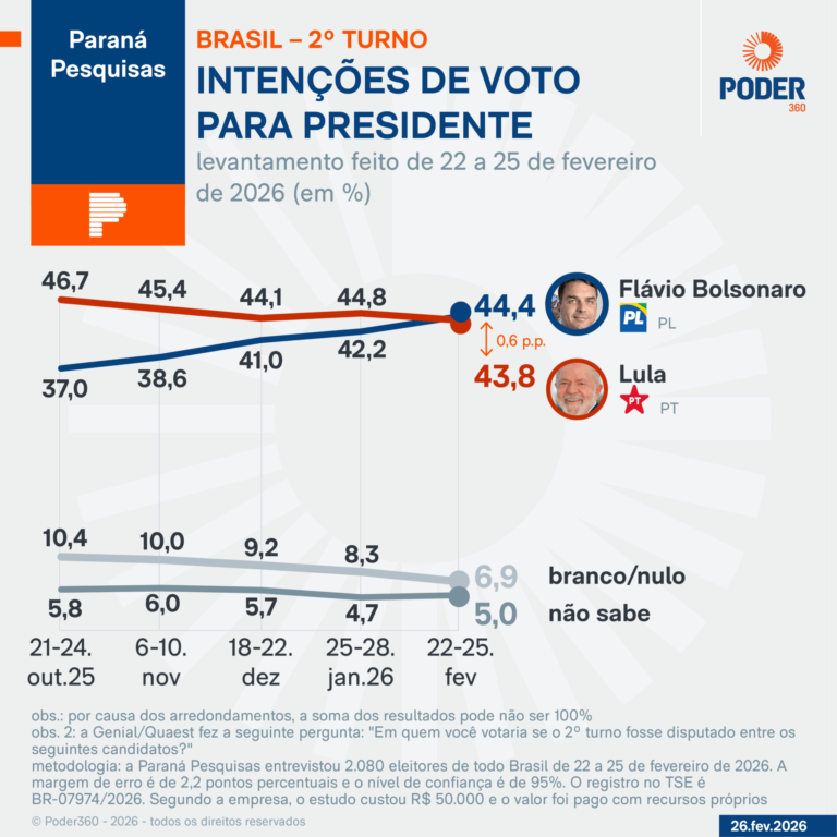 O importante aqui não é a margem estreita, mas a queda gradual e consistente de Lula. Essa tendência é clara e pode ampliar. Neste momento da campanha, a possibilidade de Flávio atrair esses 5%, ou parte deles, é real.No sentido contrário, cresce o número de eleitores de Sudeste, Sul, Norte e Centro-Oeste convictos de que Lula não merece ser reeleito.