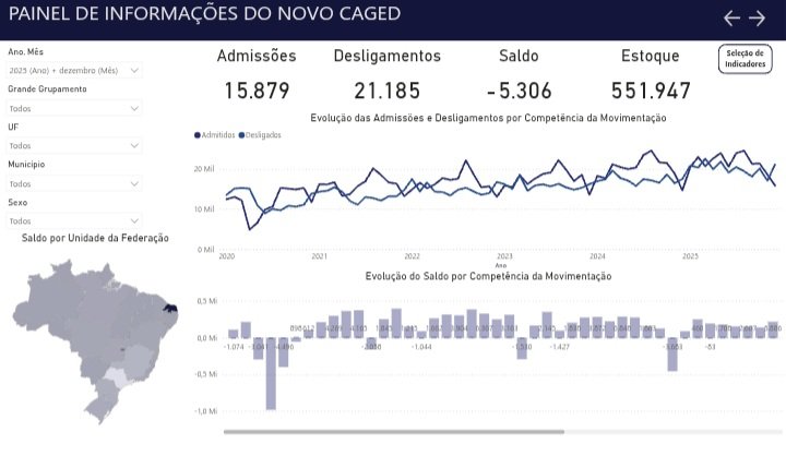 O Rio Grande do Norte terminou o ano de 2025 com um saldo de 15.870 novos empregos com carteira assinada, segundo dados do Cadastro Geral de Empregados e Desempregados (Caged) divulgados nesta quinta-feira (29) pelo Ministério do Trabalho e Emprego.